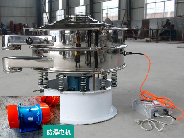 超聲波振動篩由超聲波諧振電源、振蕩器、共振環組成。超聲波諧振電源產生的高頻電振蕩由振蕩器轉換成高頻正弦形式的縱向振蕩波,這些振蕩波傳到共振環上使共振環產生共振,然后由共振環將振動均勻傳輸至篩面。篩網上的物料在做低頻三次元振動的同時,疊加上超聲波振動,既可防止網孔堵塞,又可提高篩分產量和質量。但大家也都知道振動篩分設備都是由振動電機作為基礎動力源來工作的,而振動電機分為普通電機與防暴電機兩類。
