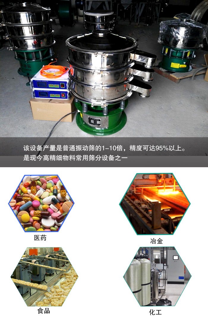 超聲波振動篩篩分時,可以達到500目,適合各種篩分粉末狀高附加值物料的用戶。