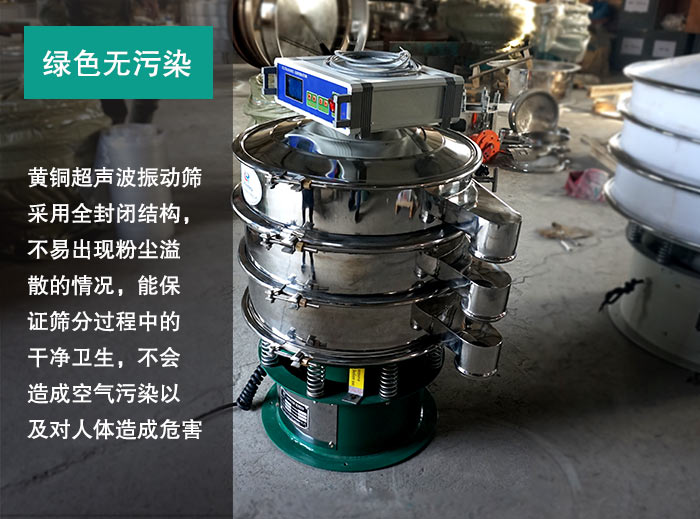 黃銅超聲波振動篩采用全封閉結構,在篩分時不會出現粉塵溢散的情況,能保證篩分過程中的干凈衛生,不會造成空氣污染以及對人體造成危害。