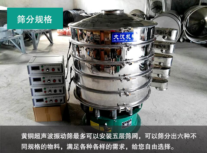 黃銅超聲波振動篩多可以安裝五層篩網,可以篩分出六種不同規格的物料,滿足各種各樣的需求,給您自由選擇。