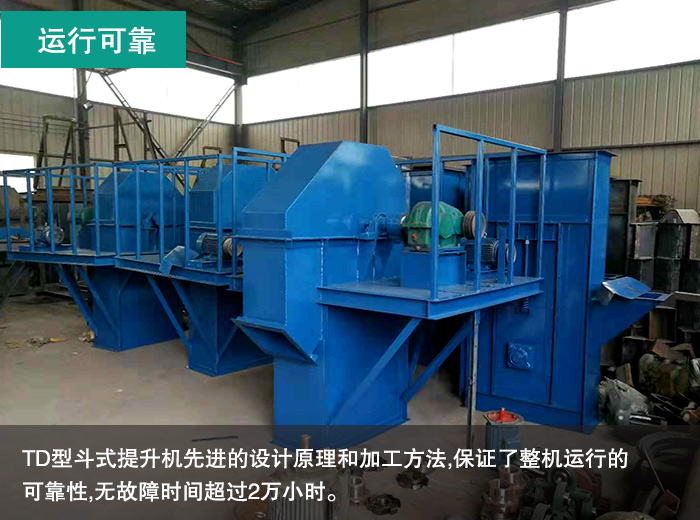 TD型斗式提升機先進的設計原理和加工方法,保證了整機運行的可靠性,無故障時間超過2萬小時。提升高度高.提升機運行平穩,因此可達到較高的提升高度。