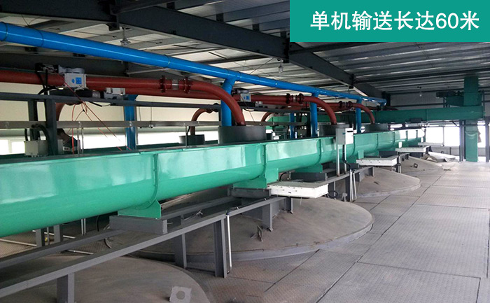 單機輸送長度可達60米。并可根據(jù)用戶需要,采用多級串聯(lián)式安裝,超長距離輸送物料。