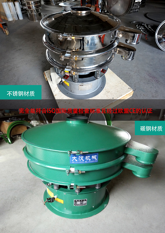不同材質(zhì)使用情況也是不一樣的,不銹鋼旋振篩一般用在耐腐蝕,耐氧化的物料之上,而碳鋼材質(zhì)則是大多用戶的選著對象,因?yàn)椴讳P鋼旋振篩與碳鋼材質(zhì)的旋振篩相比價(jià)格更高一點(diǎn)
