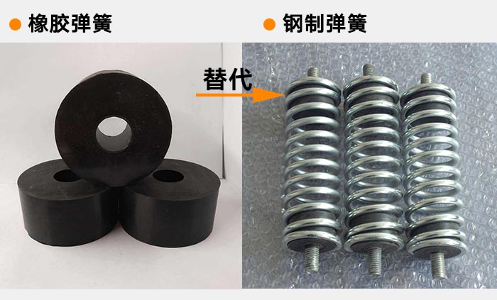①將沖孔鋼篩板更換為彈性模量小、沖擊噪聲低的聚氨酯篩板或者橡膠篩板,用橡膠彈簧替代鋼制彈簧。