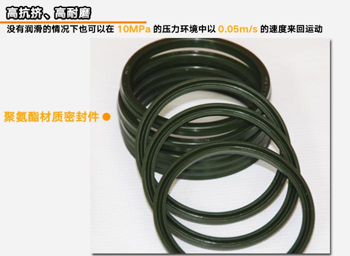 解決方法:更換優質聚氨酯密封件,聚氨酯密封材質的密封件在條件相同的情況下,同丁腈材質的橡膠對比,壽命比丁腈材質高達50倍;具備高抗擠出能力和高耐磨的特點。可在沒有潤滑的情況下也可以在10MPa的壓力環境中以0.05m/s的速度來回運動;