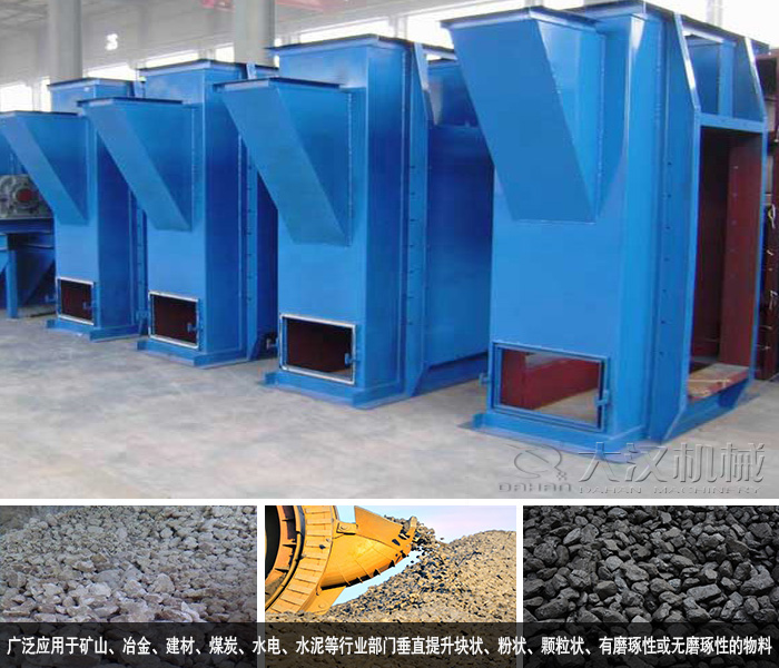 NE型板鏈斗式提升機廣泛應用于礦山、冶金、建材、煤炭、水電、水泥等行業部門垂直提升塊狀、粉狀、顆粒狀、有磨琢性或無磨琢性的物料,且物料溫度不超過250℃。