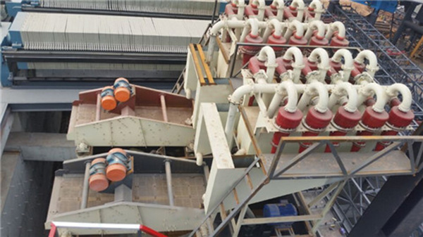 砂石生產線的整個加工系統主要分為給料系統、破碎系統以及篩分系統等等,砂石篩分系統主要起著對成品料和半成品料篩分、分級的作用,所以說直接關系著整條生產線的質量和產量,根據用戶現場情況,新鄉大漢推薦使用脫水篩。