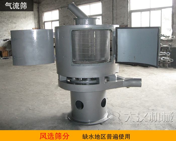 氣流篩:有時(shí)候石粉篩選方式選為風(fēng)選,通過石粉在氣流中懸浮速度的差異來進(jìn)行篩分,主要是為了解決濕法篩分用水量較高的問題,這種篩分方式在缺水地區(qū)普遍被使用。