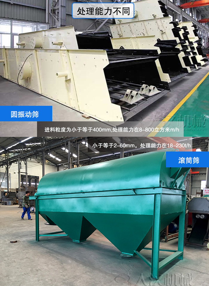圓振動篩進料粒度為小于等于400mm,處理能力在8-800立方米m/h