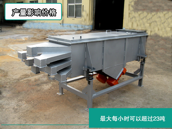 之所以選擇直線振動(dòng)篩篩分尿素顆粒的一個(gè)很大的原因是尿素振動(dòng)篩的產(chǎn)量非常大,大的每小時(shí)可以超過(guò)23噸,能非常高效的對(duì)尿素顆粒進(jìn)行篩分。對(duì)于產(chǎn)量大的機(jī)械設(shè)備來(lái)說(shuō),它的配置也是非常高的,型號(hào)也是不同的,不同型號(hào),不同產(chǎn)量,因此價(jià)格更是不同的