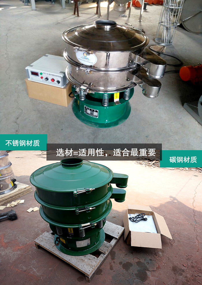 振動篩的材質是用戶所需要篩分的物料來決定的,以不銹鋼粉為例,篩分該物料可以使用碳鋼、不銹鋼這兩種材質的超聲波振動篩,但是這兩者的價格差別還是有的,碳鋼材質的振動篩在使用時,可以滿足大多篩分場景,不銹鋼粉產量大且精度高,消費者群體非常大,價格也相對優惠;不銹鋼材質則沒有以上問題,且使用起來干凈衛生,使用起來效果非常好,但是價格較碳鋼來說就會高一些,因為市場上不銹鋼材質比碳鋼材質成本高